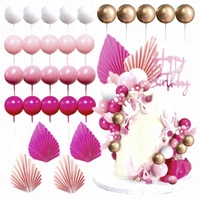 Zestaw dekoracji na tort topper KULE Złote Różowe Palmy Wachlarze