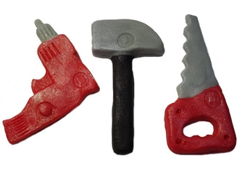 Dekoracje cukrowe na tort NARZĘDZIA - MŁOTEK, WIERTARKA, PIŁA CZERWONY