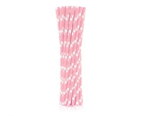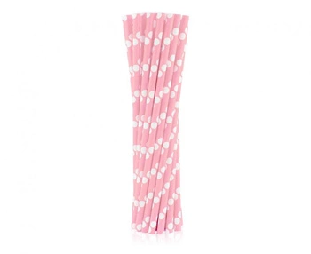#ZSŁ Rurki (słomki) pap. jasnoróżowe w białe groszki, 6x197mm / 24 szt.