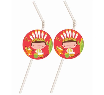 #ZSŁ_GD Rurki (słomki) z medalionem Indiańskie Party, 6 szt. KK