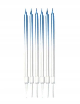 Świeczki urodzinowe BIAŁO - NIEBIESKIE MEATLICZNE OMBRE cienkie 6 szt
