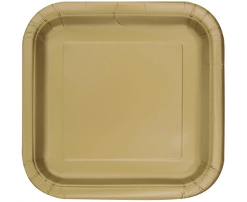 #ZTA Talerzyki papierowe, złote, 23 cm, kwadratowe, 14 szt.
