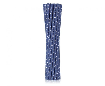 #ZSŁ Rurki (słomki) pap. granatowe w białe groszki, 6x197 mm / 40 szt.