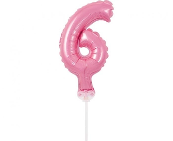 #BFC3 Balon foliowy B&C 13 cm na patyczku "Cyfra 6", różowo-złota