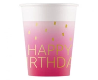 #ZKU Kubeczki papierowe Pink Happy Birthday, Decorata, FSC, 200 ml, 8 szt.