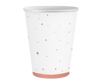 #ZKU_GD Kubeczki pap. białe, groszki różowe, certyfikat FSC, 250 ml, 6 szt.
