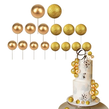Toppery na tort kule na piku ZŁOTE METALICZNE I BROAKTOWE wz.IX