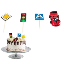 Zestaw cukrowych topperków na tort ZNAKI DROGOWE, SYGNALIZATOR. AUTKO Slado
