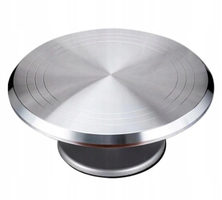 Ta solidna, metalowa patera obrotowa to niezbędne narzędzie dla każdego, kto dekoruje torty. Znacząco ułatwia tynkowanie kremem, wygładzanie masy cukrowej oraz precyzyjne zdobienie krawędzi. Platforma obraca się płynnie w dowolnym kierunku, co sprawia, że jest idealna zarówno dla osób prawo-, jak i leworęcznych.