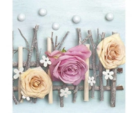 #ZSE Serwetki pap. Rose Twigs with Leaves and Flowers, 33x33 cm