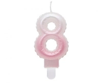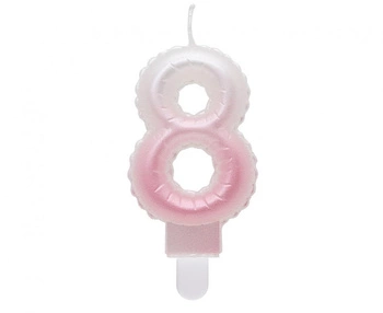 #SC12 Świeczka cyferka 8, ombre, perłowa biało-różowa, 7 cm KK