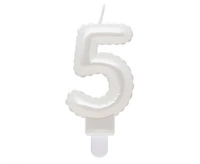 #SC6 Świeczka B&C cyferka 5, perłowa biała, 7 cm KK