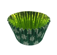 Świąteczne papilotki do muffinek 50x40 mm ZIELONE w białe śnieżynki 50 szt.
