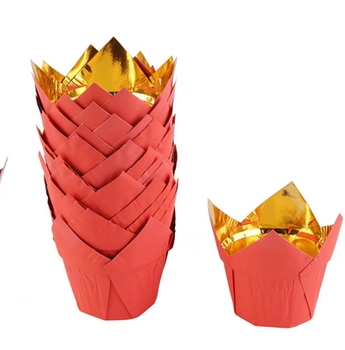 Papilotki do muffinek tulipan CZERWONO ZŁOTE 50x80 mm 50 szt.