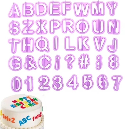 - Zestaw wykrawaczy cukierniczych - ALFABET to esencja kreatywności w pieczeniu. 40 precyzyjnie wykonanych elementów z drukowanymi literami pozwoli Ci tworzyć spersonalizowane napisy z masy cukrowej czy czekolady. Idealne do dekoracji tortów, ciasteczek i i