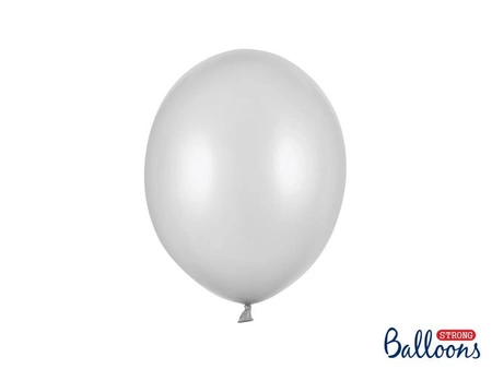 Balony lateksowe Strong 27 cm metaliczny SREBRNY 10 szt. firmy Party Deco