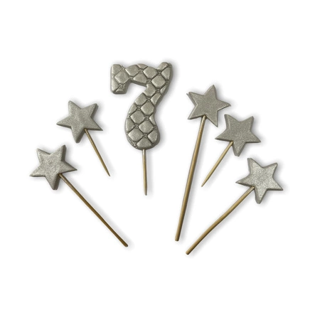 Zestaw topperów - cyfra 7 i gwiazdki SREBRNY firmy Slado