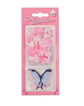 MOTYLE waflowe z kwiatami mini OMBRE (5 motyli + 25 kwiatków minI) Rose Decor