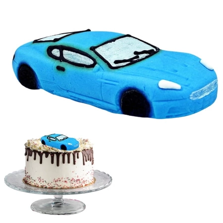 Figurka samochodu w intensywnie niebieskim kolorze to doskonała ozdoba dla każdego, kto kocha szybkie auta i motoryzacyjne motywy. Ta cukrowa dekoracja przyciągnie wzrok wszystkich gości, stając się jednocześnie wyjątkowym akcentem tortu lub innego słodkiego wypieku.