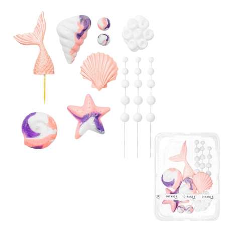 Figurki na tort SYRENI OGON, ROZGWIAZDY, MUSZLE, KORALE zestaw morski Ditarte