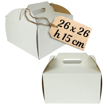Mocne pudełko na tort ciasto 26x26x15 cm z rączką
