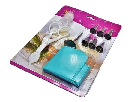 Narzędzia dekoratorskie - rękaw z końcówkami oraz nożyczki z gwoździem do kwiatów maślanych