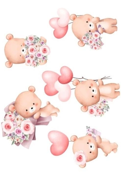 Opłatek na tort ROCZEK DZIEWCZYNKA MISIE SERDUSZKA WZ. I