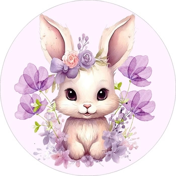 Opłatek na tort KRÓLICZEK RÓŻOWY W KOSZYCZKU WZ.I