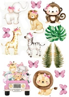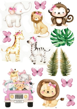 Opłatek na tort ZWIERZĄTKA SAFARI RÓŻ WZ.I