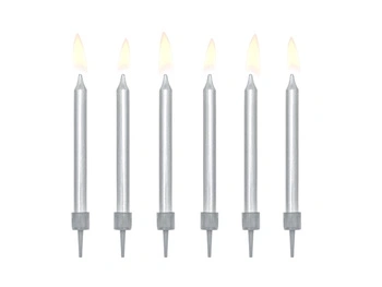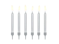 Dekoracja na tort świeczki urodzinowe gładkie, srebrny, 6cm (1 op. / 6 szt.)