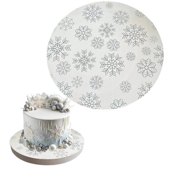 Podkład pod tort styrodur śr. 30 ŚWIĄTECZNY SREBRNE ŚNIEŻYNKI