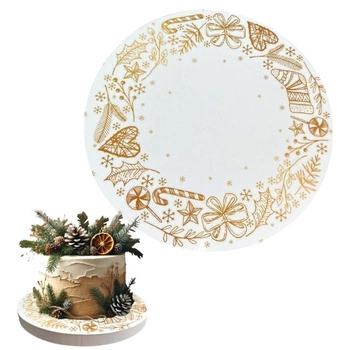 Podkład pod tort styrodur śr. 26 ŚWIĄTECZNY BIAŁY ZE ZŁOTYM MOTYWEM