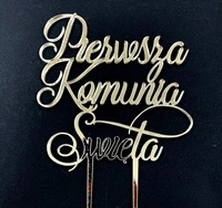 Topper "Pierwsza Komunia Święta" ZŁOTY elegancki