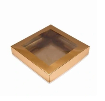 Pudełko z okienkiem na pierniczki ciastka 19x19x3,5 cm ZŁOTE