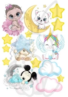 Wydruk jadalny opłatek na tort BABY GIRL MISIACZEK, MYSZKA, JEDNOROŻEC BABY SHOWER