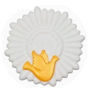 Dekoracja cukrowa HOSTIA BIAŁA z gołębicą 8 cm