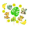 - Zwierzęta Safari i inne dekoracje: W zestawie znajdują się figurki przedstawiające żyrafę, tygrysa, pandę, szopa, żółwia, banany, liście oraz bezy, które dodają wypiekom egzotycznego akcentu.
