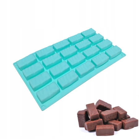 Silikonowa forma do pralin i ptasiego mleczka to niezwykle praktyczne narzędzie w kuchni. Dzięki niej przygotujesz równo wykończone porcje w kształcie idealnych kostek. Wystarczy rozpuścić czekoladę lub przygotować masę ptasiego mleczka, wlać do formy, a następnie poczekać, aż deser stężeje. Elastyczność silikonu sprawia, że gotowe słodkości łatwo wyciągniesz z formy, bez ryzyka uszkodzenia. Co więcej, forma może być używana również do przygotowania batonów, galaretek czy nawet kostek lodu!