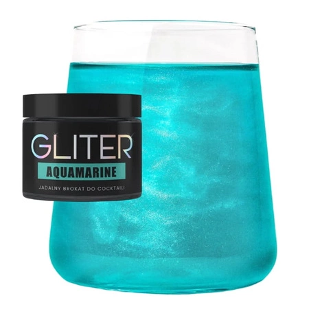 Przenieś swoje drinki wprost do świata egzotycznych lagun! AQUAMARINE GLITER to turkusowy jadalny brokat, który nada Twoim napojom efekt krystalicznej głębi oceanu. Ten intensywny, migoczący odcień przypomina błękitne fale i refleksy słoneczne na wodzie, dzięki czemu każdy koktajl, drink czy lemoniada staje się wyjątkowy.