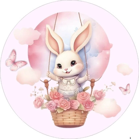 Opłatek na tort KRÓLICZEK RÓŻOWY W KOSZYCZKU WZ.I