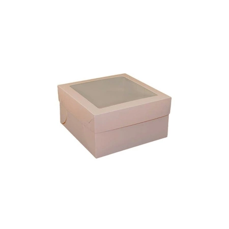 Bardzo estetyczne opakowanie na 4 muffinki, wykonane z tektury litej, z okienkiem w wieczku wykonanym ze sztywnej folii.