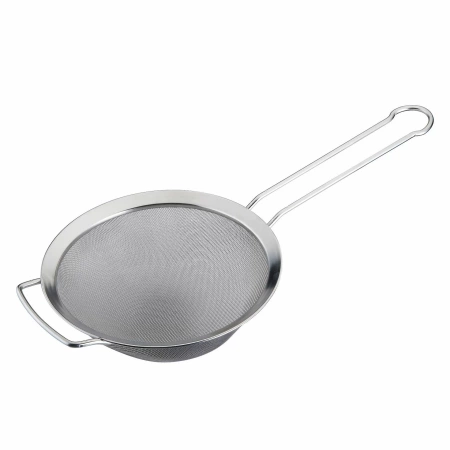 Sito to niezastąpione narzędzie w każdej kuchni, zarówno podczas przygotowywania wypieków, jak i podczas przesiewania mąki, cukru pudru czy kakao. Dzięki drobnej siatce z otworami o średnicy 6,5 otworów/cm², sito Tomgast precyzyjnie przesiewa składniki, eliminując grudki i nierówności, co jest kluczowe przy przygotowywaniu idealnie gładkich ciast, ciastek czy innych deserów.