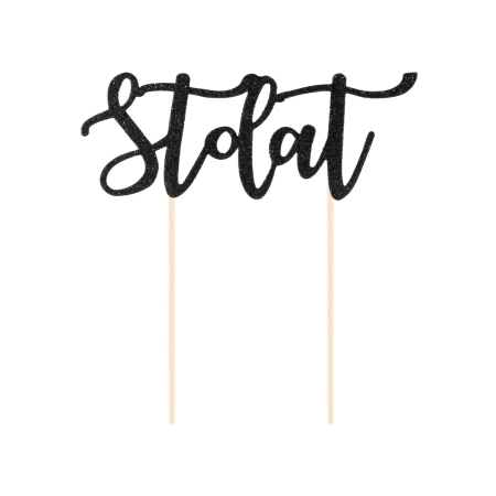 Topper wykonany jest z trwałego papieru pokrytego czarnym brokatem, a stabilność zapewniają drewniane patyczki, które łatwo umieścić w torcie. Motyw jest wyraźny, estetyczny i przyciąga wzrok.