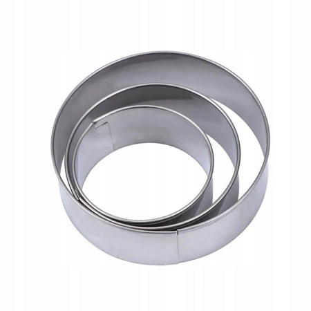- Zestaw trzech obręczy do formowania, wykrawania i ozdabiania potraw i ciast. Idealne do przygotowania ciast, galaretek, sałatek przekładanych czy ziemniaków, ryżu i kasz.