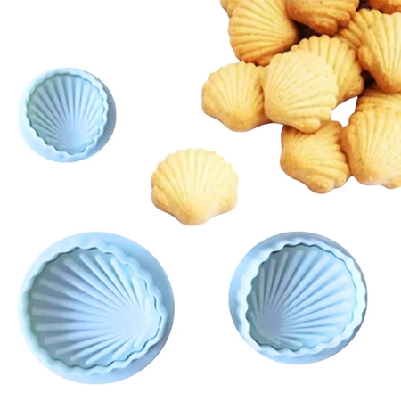 Zestaw 3 szt. wykrawaczek foremek do dekoracji z masy cukrowej ciastek z tłoczkiem MUSZELKI
