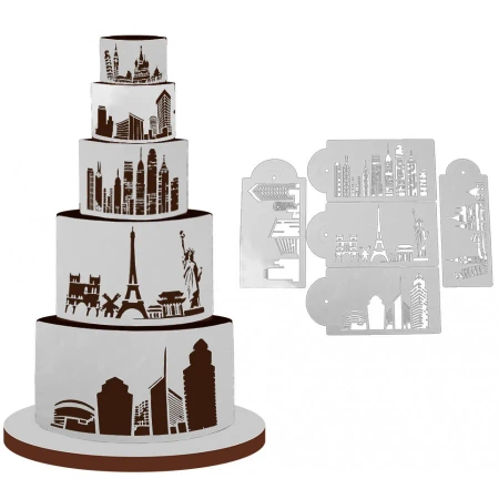 Zestaw Szablonów do Dekoracji Tortów i Ciast MIASTA BUDOWLE