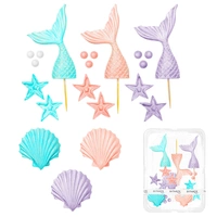 Figurki na tort SYRENIE OGONY, PERŁY, GWIAZDY MUSZLE zestaw morski Ditarte