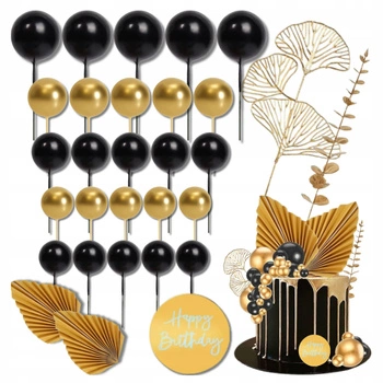 Zestaw dekoracji na tort kule toppery CZARNO ZŁOTE 30 szt.