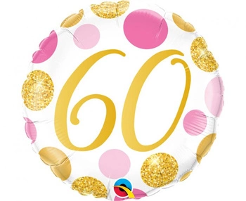 #BFK Balon foliowy 18 cali QL CIR 60 Urodziny, różowo-złote groszki KK