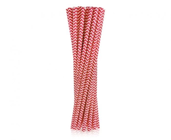 #ZSŁ Rurki (słomki) pap. czerwone szlaczki, 6x197mm / 24 szt. KK